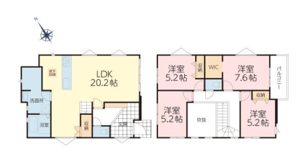 築年月 2026年4月築 間取り 4LDK (LDK20.2/洋室5.2/洋室5.2/洋室5.2/洋室7.6)
