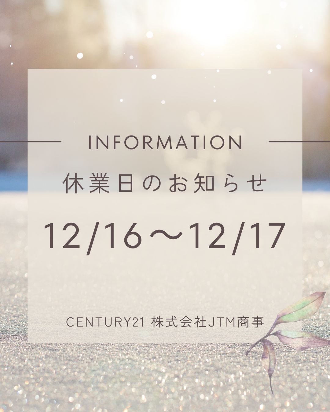 ◆休業日のご案内(12月16日・17日)◆2025-12-15