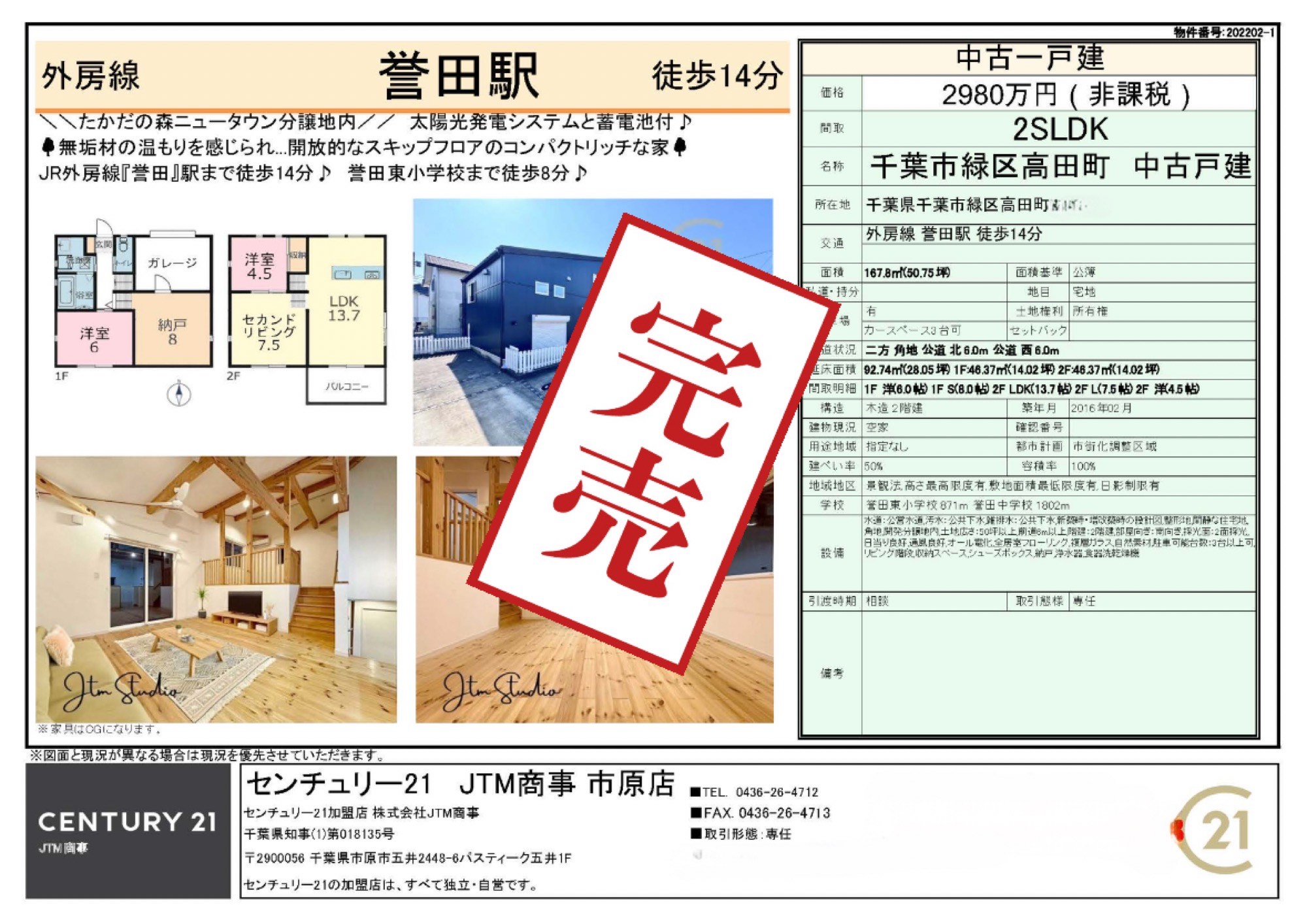 ◆専任物件 千葉市緑区高田町◆完売しました!【更新】 | 木更津市の注文住宅ならセンチュリー21JTM商事へ